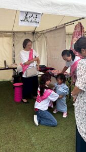 JKKは、【日本の文化体験ブース】にて、お子様や外国からのお客様に、浴衣の着付けをしました。